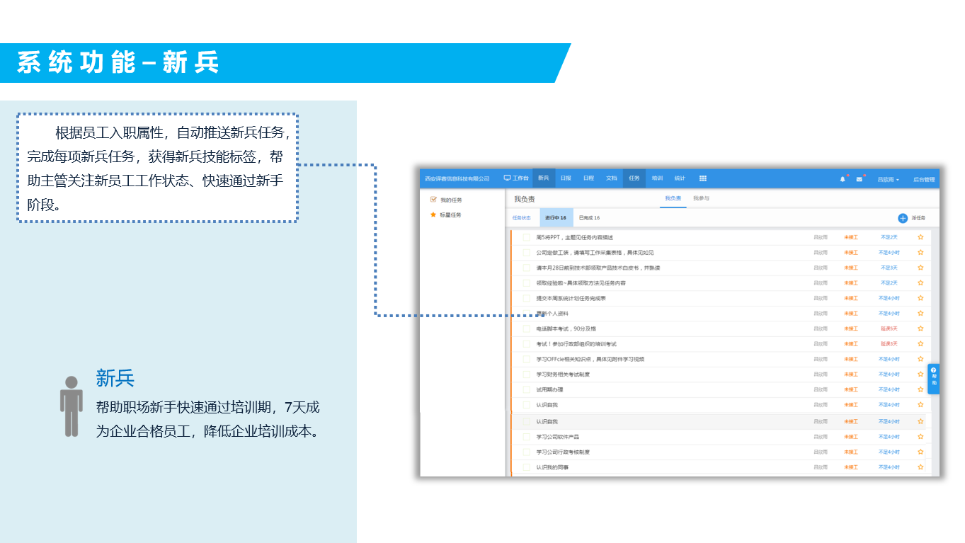 讓每一(yī)個(gè)工(gōng)作(zuò)者、每一(yī)個(gè)崗位都(dōu)能(néng)參與到(dào)“虛拟培訓理(lǐ)念中”。打消新人(rén)入職迷茫,提高↕(gāo)主觀意識,自(zì)主接“任務”,完成“任務”。